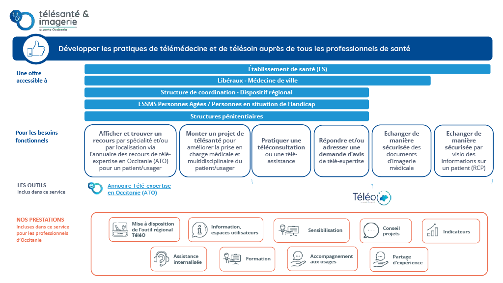 Nous mettons à votre disposition TéléO, une plateforme régionale de télémédecine incluant des modules de téléconsultation, de téléexpertise et de partage d’imagerie. Cette plateforme est subventionnée par l’ARS Occitanie.